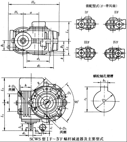 SCWO型ⅠF、ⅡF蝸桿減速器及裝配型式 /mm